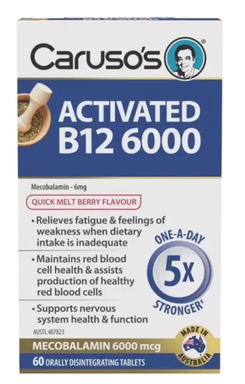 Caruso’s Activated B12 6000 is a high strength one-a-day tablet containing 6mg of Mecobalamin, the bioavailable and metabolically active form of Vitamin B12.