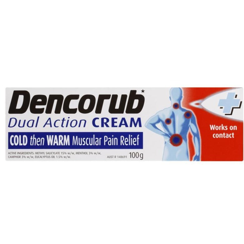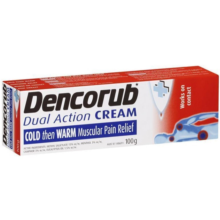 DENCORUB DUAL ACTION CREAM is a non-greasy, quickly absorbed cream that rubs right in and goes right to work providing soothing relief. Specially formulated, it begins to work on contact. The cream goes on feeling COLD TO EASE THE PAIN, then HEATS UP FOR SOOTHING RELIEF. Ideal for temporary relief of aches and pains of muscles and joints associated with backache, strains, sprains of tendons and ligaments.