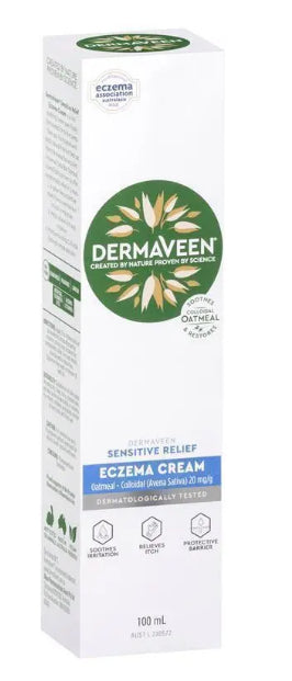 DermaVeen Sensitive Relief Eczema Cream soothes irritation, relieves itch, protective barrier and with colloidal oatmeal that soothes and restores skin.