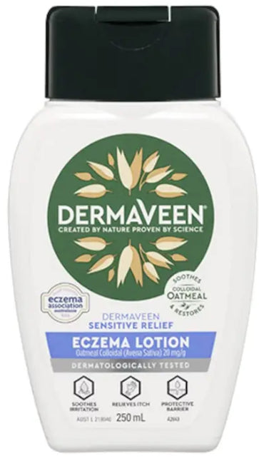 Eczema lotion by DermaVeen, helps soothe irritation, relieves itchiness & provides a protective barrier. Formulated for symptomatic relief of mild eczema flare ups.