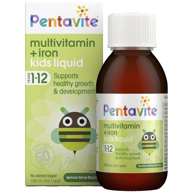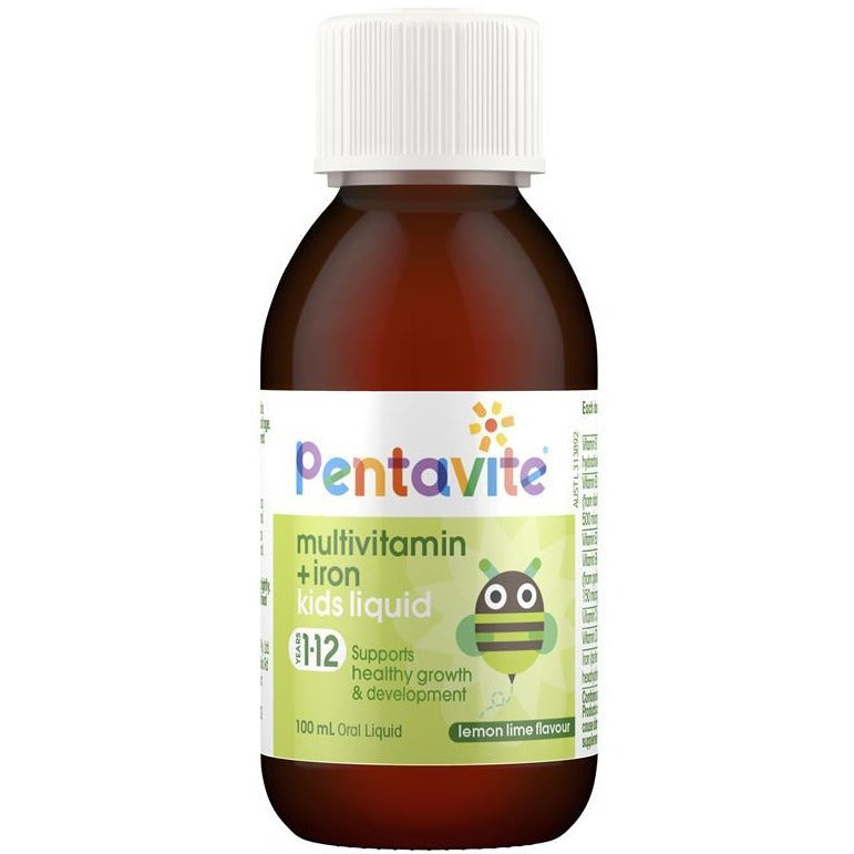 Pentavite® Multivitamin + Iron Kids Liquid contains a combination of vitamins together with added iron to assist with the healthy growth and development of children from 1 up to 12 years.