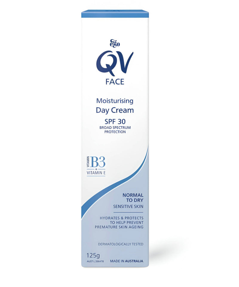 Gently formulated for daily moisturising, QV Face Moisturising Day Cream also offers SPF 30 protection to help buffer your skin against damage and the appearance of premature ageing by the sun’s UV rays.