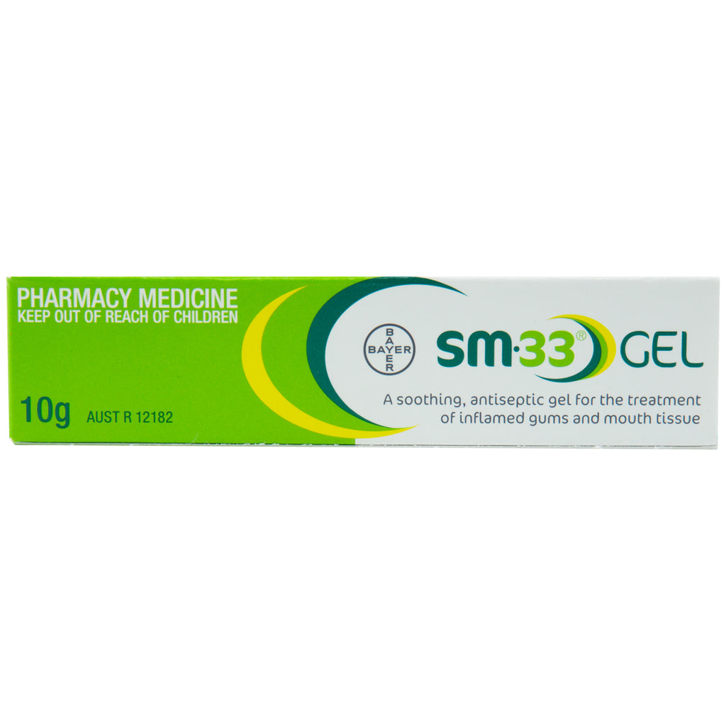 SM33 Gel is a soothing, antiseptic gel for temporary pain-relieving treatment of inflamed gums and mouth tissue, transient mouth ulcers, new dentures, abrasions & inflammation of the gums, palate and tongue.