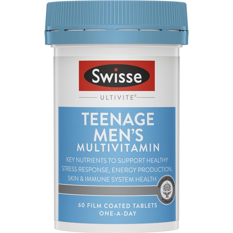 Swisse Teenage Men's Ultivite is a premium quality formula multi vitamin containing 36 vitamins, minerals, antioxidants and herbs tailored for teenage boys to support energy production, healthy skin, immune function and provide support during stress. Swisse Teenage Men's Ultivite has been formulated based on scientific evidence to provide teenage boys with nutritional support during times of stress, physical performance, growth and development.