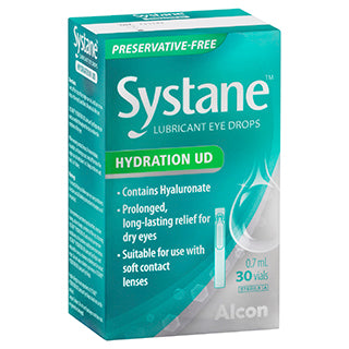 It is essential that you follow your eye care practitioner's directions and all labelling instructions for proper use of the product. If you experience persistent eye discomfort, excessive tearing, vision changes, or redness of the eye, stop using Systane Hydration UD and consult your eye care practitioner as the problem could become more serious. Systane Hydration UD Lubricant Eye Drops is not indicated for use as a cleanser or disinfectant for contact lenses. Do not soak or disinfect your lenses in Systane Hydration UD Lubricant Eye Drops. People allergic to any ingredient in Systane Hydration UD Lubricant Eye Drops should not use this product. Tamper Evident: Do not use if package or unit dose vials are opened or damaged.