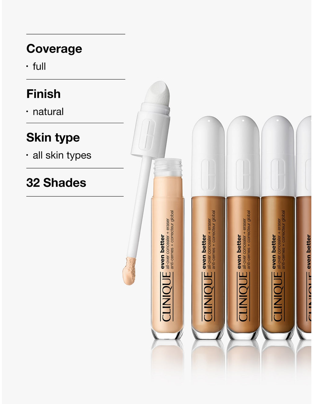 • Ngay lập tức sửa chữa, che giấu quầng thâm và đốm nâu, và làm mờ các khuyết điểm với khả năng giữ màu cả ngày.