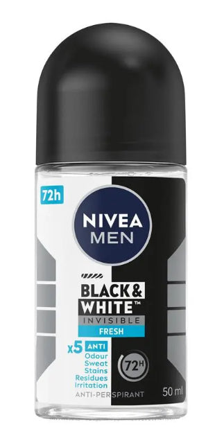 Dòng sản phẩm NIVEA MEN BLACK & WHITE Invisible cung cấp khả năng bảo vệ chống vết trắng trên quần áo đen và chống ố vàng trên quần áo trắng nhờ công nghệ chống vết bẩn độc quyền được cấp bằng sáng chế. Đây là sản phẩm chống mồ hôi đáng tin cậy với hiệu quả lên đến 72 giờ, mạnh mẽ chống mồ hôi và mùi hôi, đồng thời chăm sóc làn da của bạn với cảm giác sạch sẽ và tươi mát. Công thức của sản phẩm đã được chứng minh về độ dung nạp da qua kiểm nghiệm da liễu và không chứa cồn ethyl. NIVEA Black & White mang đến sự bảo vệ toàn diện chống lại mồ hôi, mùi hôi, vết bẩn, cặn và kích ứng, đồng thời nhẹ nhàng với làn da. Các sản phẩm chống mồ hôi của chúng tôi cung cấp bảo vệ Derma 72h Active: sản phẩm hoạt động cùng làn da, mang lại hiệu quả mạnh mẽ và đáng tin cậy chống mồ hôi và mùi hôi với công thức thân thiện với da. Hãy nhận lấy sự bảo vệ và chăm sóc đáng tin cậy mà bạn xứng đáng! Cũng có sẵn dưới dạng bình xịt aerosol.