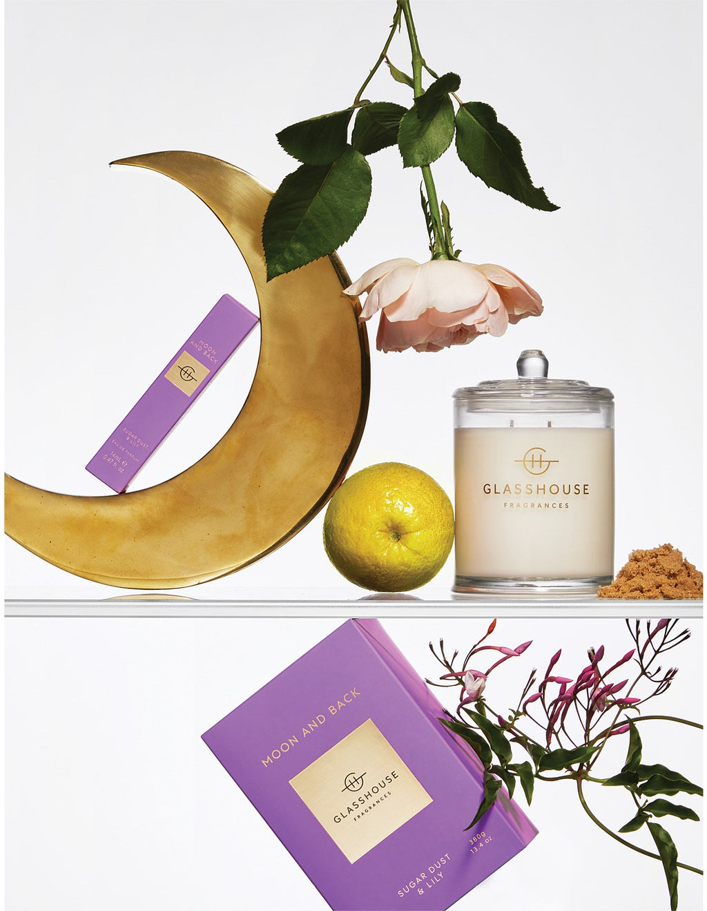 当你在外太空翱翔时,有旋转的糖丝围绕着一束花香,花束中盛开着百合和香甜的香缇奶油,迅速召唤你回家。欢迎回来,我们爱你。