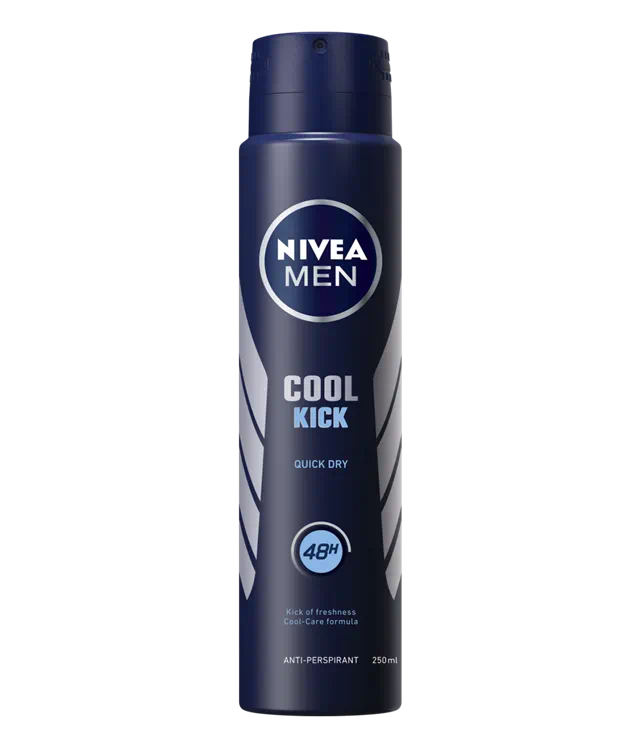 NIVEA MEN Cool Kick Anti-Perspirant Aerosol Deodorant 立即提供清新活力的绝佳感觉,同时可靠地保护一整天。温和的 Cool-Care 配方可让身体愉快地焕发活力,并通过具有刺激性的男性气味有效调节汗水,有效地发挥作用,让您更长时间保持清新。 NIVEA MEN Cool Kick Anti-Perspirant Aerosol Deodorant 提供真正自信的 48 小时有效排汗调节和清新感。获得您应得的可靠保护和关怀!这种止汗剂的皮肤耐受性已被皮肤病学证明。