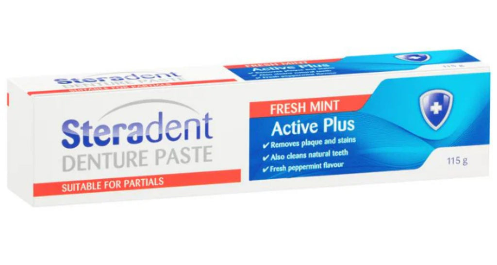 - Steradent Active Plus 假牙膏具有薄荷味,让您的口腔感觉清新。